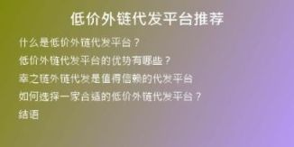 為什么需要低價(jià)外鏈代發(fā)平臺(tái)?在網(wǎng)絡(luò)營(yíng)銷中,外鏈?zhǔn)且粋€(gè)非常重要的概念。外鏈數(shù)量越多,網(wǎng)站權(quán)重越高。然而,一些小型企業(yè)或個(gè)人經(jīng)營(yíng)的網(wǎng)站,往往沒有足夠的經(jīng)費(fèi)聘請(qǐng)專業(yè) SEO 公司來(lái)做外鏈工作。這時(shí),一個(gè)低價(jià)外鏈代···