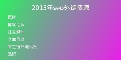 概述在當(dāng)今數(shù)字化的時(shí)代,網(wǎng)站優(yōu)化(SEO)已成為每個(gè)網(wǎng)站主的必修課。而其中的外鏈建設(shè)是SEO優(yōu)化中不可或缺的一部分。本文將探討2015年的SEO外鏈資源。博客論壇博客論壇是SEO外鏈的常見(jiàn)場(chǎng)所。2015年,WordPress、Blo···