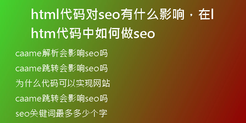 2024-03-17站長百科大家好,今天小編來為大家解答以下的問題,關(guān)于html代碼對seo有什么影響,在html代碼中如何做seo這個很多人還不知道,現(xiàn)在讓我們一起來看看吧!caame解析會影響seo嗎1.不會影響SEO。2.因為CAAME解析是一種網(wǎng)站性能優(yōu)化···
